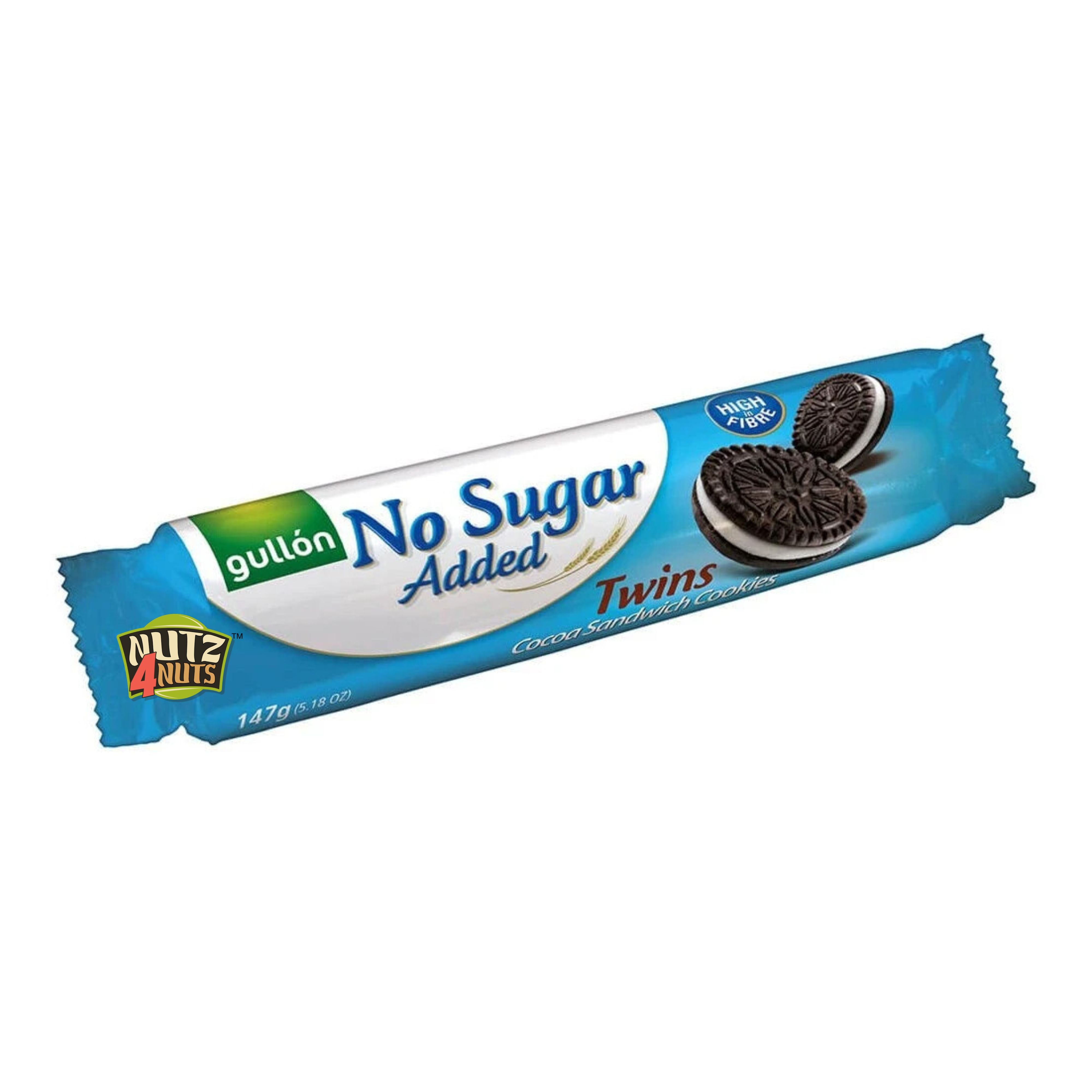 The Twins Cookie Sandwich is a chocolate biscuit with cream.